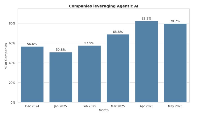 - 82% of companies now use agentic AI for coding tasks, up from just over 50% at the start of 2025.